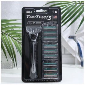 НАЙТИ ВЫГОДНЕЕ - Мужская бритва TopTech PRO 3, 1 бритва + 10 сменных кассет (1шт.)