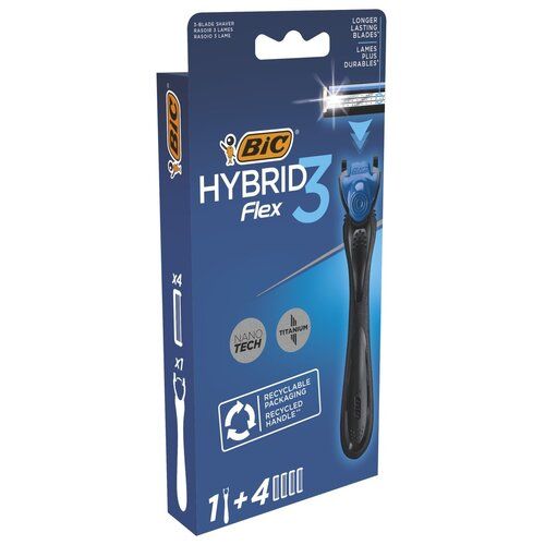 С мужской бритвенной системой Bic Flex 3 Hybrid можно долго не беспокоиться о покупке новых лезвий. В одной упаковке вы найдете ручку и четыре сменные кассеты, которые легко заменить простым нажатием кнопки. Три подвижных нанотехнологичных лезвия индивидуально подстраиваются под контуры вашего лица для тщательного и гладкого бритья, поэтому вы быстро избавитесь даже от самой жесткой щетины. Кассеты легко промываются - забудьте о застревающих волосках между лезвиями каждая бритва изготовлена в Европе на собственных заводах Bic и проходит более 25 тестов контроля качества. Уникальная экспертиза: уже более 45 лет Bic разрабатывает и производит широкий ассортимент высококачественных станков для бритья и лезвий. Bic - имя, которому мужчины могут доверять.