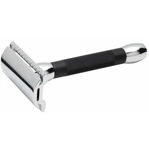Cтанок Т- образный для бритья MERKUR хромированный, прямой срез, короткая ручка черного цвета, лезвие в комплекте (1 шт), в картонной коробке