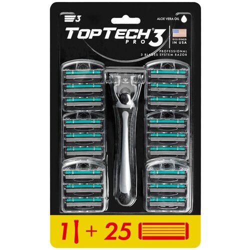 НАЙТИ ВЫГОДНЕЕ - Станок TopTech Pro 3 + 25 сменных кассет, США. Мужской бритвенный набор