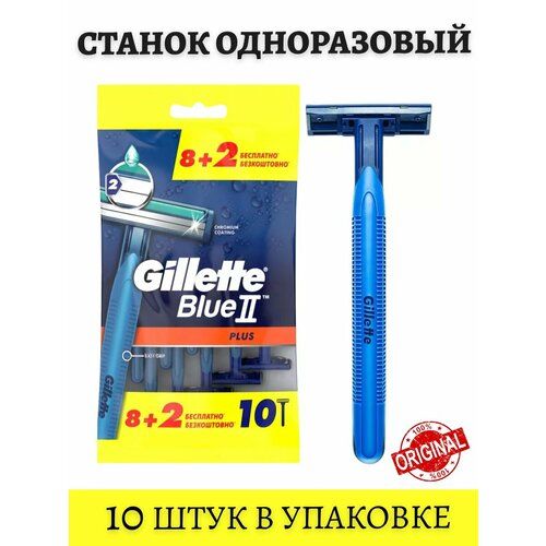"Джилет Одноразовые Мужские Бритвы, с 2 лезвиями, 10 шт, фиксированная головка, Gillette Blue2 Plus