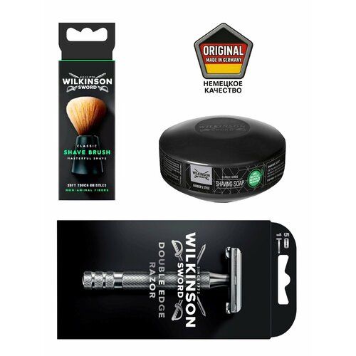 НАЙТИ ВЫГОДНЕЕ - Wilkinson Sword / SCHICK BARBER'S STYLE Pioneer Collection / Опасная бритва ( шаветка) с 5 лезвиями + мыло + помазок, Германия