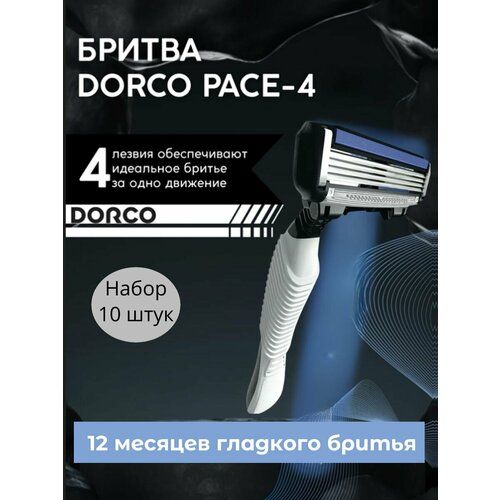НАЙТИ ВЫГОДНЕЕ - Бритва DORCO PACE4, станок мужской одноразовый 4-лезвийный с увлажняющей полоской - 10 шт.