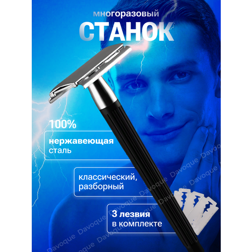 НАЙТИ ВЫГОДНЕЕ - Станок для бритья мужской женский / Бритва многоразовая Т образная стальная с 3 сменными лезвиями