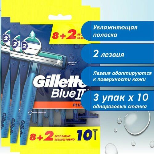 НАЙТИ ВЫГОДНЕЕ - Бритва одноразовая мужская Gillette Blue 2 Plus, 10 штук х 3 упак