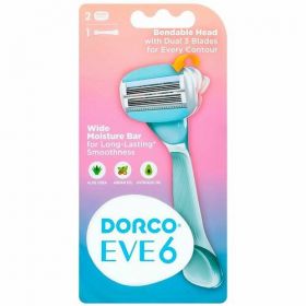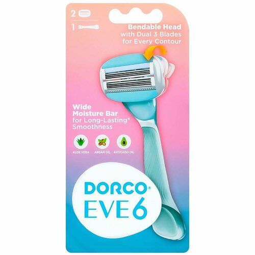 Dorco Бритва EVE6, женская, 6 лезвий, крепление PACE, плавающая головка (1 станок, 2 кассеты).