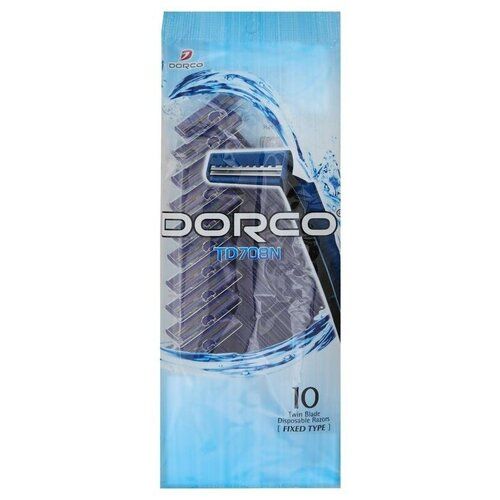 Бритва одноразовая Dorco TD708-10P. Два лезвия с микрозаточкой обеспечивают комфортное, чистое бритье, не вызывая раздражений. Фиксированная бреющая головка с удобным углом наклона. Пластиковая удобная ручка. Для вашего мягкого и комфортного бритья. Два лезвия расположены таким образом, что первое, сбривая длинные волосы, натягивает их, позволяя второму лезвию добривать их начисто.Беречь от детей Не трогать и не вытирать бреющие лезвия. Хранить бритвенный станок в сухом месте.