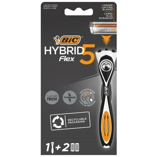 Мужская бритва 5 лезвий BIC Hybrid 5 Flex с плавающей головкой бритвенный станок для мужчин + 2 сменные кассеты с Алоэ Вера и витамином Е