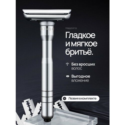 Т-образная бритва оснащена регулируемым механизмом, что позволяет легко настроить ее под индивидуальные особенности кожи и волос. Благодаря этому бритье становится более комфортным и безопасным.