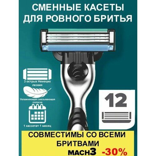 НАЙТИ ВЫГОДНЕЕ - Сменные кассеты для бритья совместимые с Джиллет Мак3/Mach3 ,12 кассет.