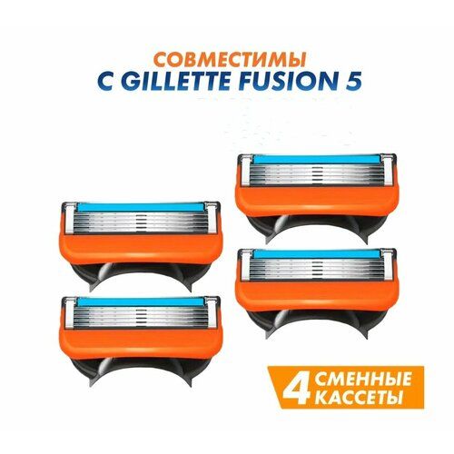 НАЙТИ ВЫГОДНЕЕ - Сменные кассеты лезвия для бритья совместимые с Fusion5 (оранжевые),4 шт.