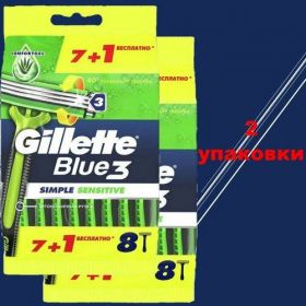 НАЙТИ ВЫГОДНЕЕ - Бритва безопасная одноразовая Gillette Blue 3 Simple Sensitive, 2 упак х 8 станков