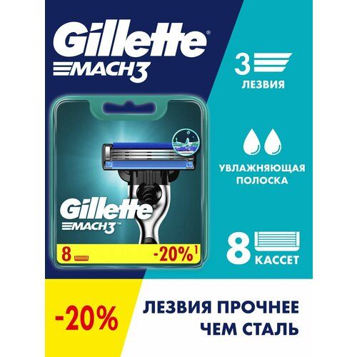 НАЙТИ ВЫГОДНЕЕ - GILLETTE Mach 3 Сменные кассеты для бритья с 3 лезвиями, 8 шт