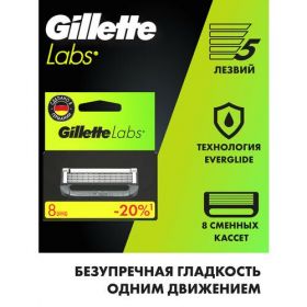 НАЙТИ ВЫГОДНЕЕ - Сменные кассеты Gillette Labs для мужской многоразовой бритвы, , 8 шт.