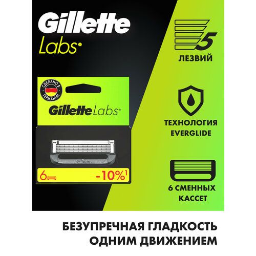 НАЙТИ ВЫГОДНЕЕ - Сменные кассеты Gillette Labs для мужской многоразовой бритвы, 6 шт.