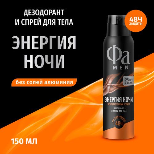 НАЙТИ ВЫГОДНЕЕ - Фа Фа MEN 150 мл Аэрозоль дезодорант & спрей для тела Энергия Ночи, 150 мл, 125 г