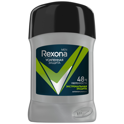 Антиперспирант-карандаш Rexona Men экстремальная защита, 40 мл. Антиперспирант Rexona Экстремальная защита обеспечивает длительную защиту от пота и запаха, позволяет ломать барьеры на пути к движению. Он не перестанет работать, несмотря на то, как активно вы будете двигаться. Невероятная уверенность вместе с антиперспирантом Экстремальная защита от Rexona Men возможна благодаря усиленной формуле для непревзойденной защиты от пота и запаха на 72 часа.
