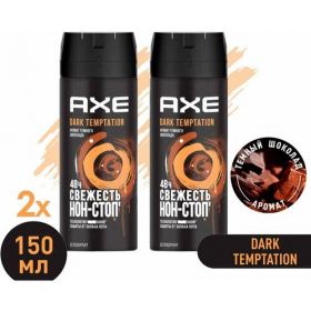 НАЙТИ ВЫГОДНЕЕ - AXE мужской дезодорант-спрей DARK TEMPTATION Тёмный шоколад/ 2x150 мл