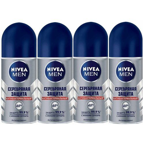 НАЙТИ ВЫГОДНЕЕ - Дезодорант-антиперспирант роликовый для тела Nivea Men Серебряная защита мужской 50 мл, 4 упаковки
