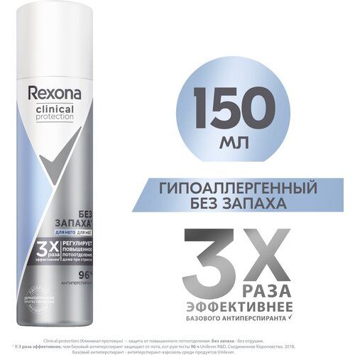 НАЙТИ ВЫГОДНЕЕ - Антиперспирант-аэрозоль Rexona Clinical Protection гипоаллергенный без запаха 150 мл