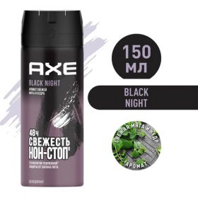 Дезодорант-спрей AXE Black night Свежая мята и кедр 150мл - действенное оружие против пота и неприятного запаха, разработанное популярным косметическим брендом специально для мужчин. Его чувственный и волнующий аромат сочетает в себе притягательную сладость ванили с пряными и терпкими древесными нотами. Парфюмерная композиция раскрывается постепенно, с каждой фазой обостряя все органы чувств и настраивая на новые приключения предстоящей непредсказуемой ночи. AXE с 1983 года помогает мужчинам найти и продемонстрировать свою индивидуальность, и заявляет: "Будь оригинальной версией себя, а не копией кого-то".