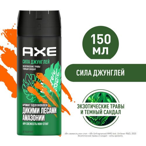 НАЙТИ ВЫГОДНЕЕ - Дезодорант-аэрозоль axe сила джунглей с защитой от запаха пота до 48 часов и топовым ароматом 150 мл