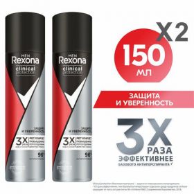 НАЙТИ ВЫГОДНЕЕ - Дезодорант мужской Rexona clinical protection men защита и уверенность, 150 мл (2 шт)