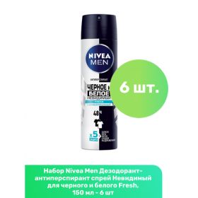 НАЙТИ ВЫГОДНЕЕ - Nivea Men Дезодорант-антиперспирант спрей Невидимый для черного и белого Fresh, 150 мл - 6 шт