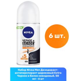 НАЙТИ ВЫГОДНЕЕ - Nivea Men Дезодорант-антиперспирант шариковый Extra Черное и Белое невидимый, 50 мл - 6 шт