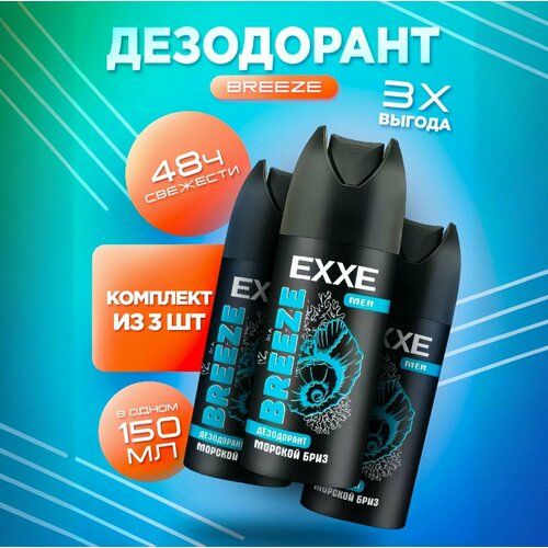 НАЙТИ ВЫГОДНЕЕ - EXXE MEN BREEZE дезодорант мужской, 3 шт