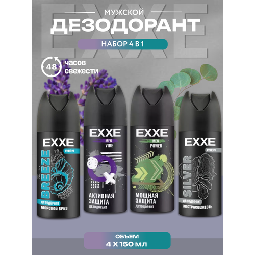 НАЙТИ ВЫГОДНЕЕ - Набор дезодорантов EXXE Микс, 4 шт, 150мл, спрей, для чёрного и белого