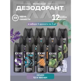 НАЙТИ ВЫГОДНЕЕ - Дезодорант EXXE 12 шт. по 150мл, микс ароматов, спрей, без спирта и солей алюминия