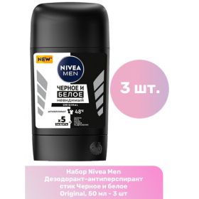 НАЙТИ ВЫГОДНЕЕ - Nivea Men Дезодорант-антиперспирант стик Черное и белое Original, 50 мл - 3 шт