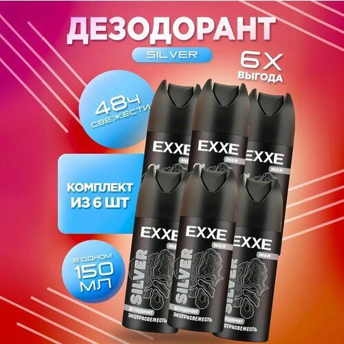 НАЙТИ ВЫГОДНЕЕ - EXXE Men Silver - дезодорант для мужчин, 6 флаконов по 150мл