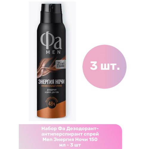 НАЙТИ ВЫГОДНЕЕ - Фа Дезодорант-антиперспирант спрей Men Энергия Ночи 150 мл - 3 шт