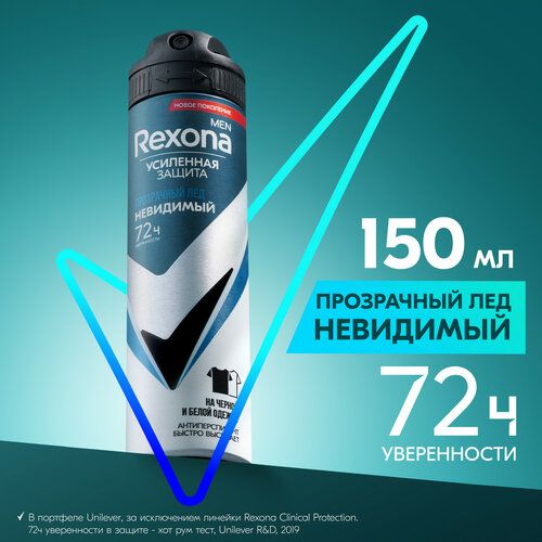 Дезодорант мужской спрей антиперспирант Рексона Men Прозрачный лед Невидимый, защита от пятен 150 мл 1778007719