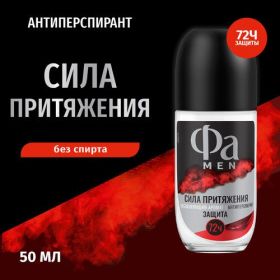 Фа Men Антиперспирант Сила притяжения представляет собой эффективное средство для борьбы с неприятными запахами и избыточным потоотделением. Продукт обладает объемом 50 мл и выпускается в форме ролика, что обеспечивает удобство и экономичность использования.