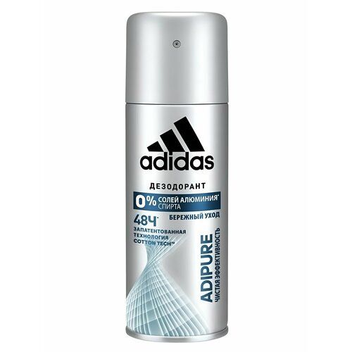 Антиперспирант для мужчин Adipure, Adidas благодаря запатентованной технологии Cotton Tech дезодорант обеспечивает надежную защиту от пота на 48 часов и бережный уход за кожей, даже когда ты действуешь на пределе своих возможностей.