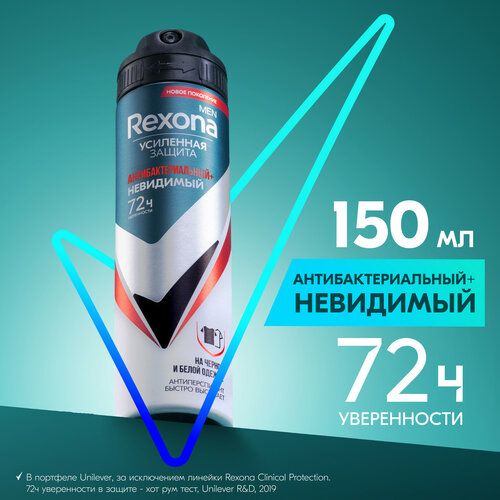 Дезодорант мужской спрей антиперспирант Рексона Антибактериальный и невидимый на черной и белой одежде, 150 мл 101836653742
