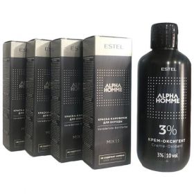 В наборе: краска-камуфляж 4/0 шатен 40 гр - 4 шт и крем-оксигент 3% ALPHA HOMME 200 мл - 1 шт.