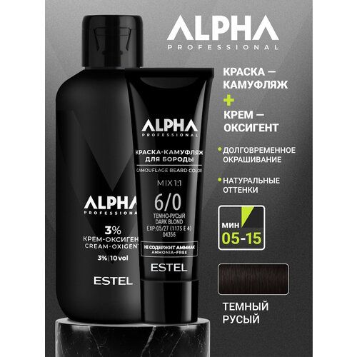 НАЙТИ ВЫГОДНЕЕ - Набор ALPHA для окрашивания бороды ESTEL PROFESSIONAL 6/0 темно-русый 40+200 мл