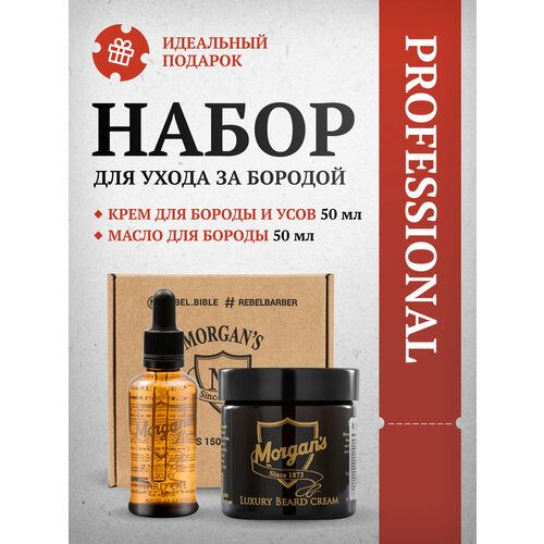 НАЙТИ ВЫГОДНЕЕ - Подарочный набор для мужчин, премиальное масло + премиальный крем для бороды и усов Morgan's