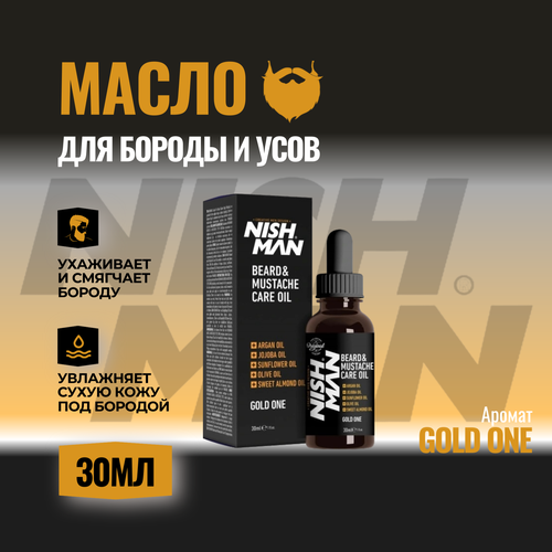 НАЙТИ ВЫГОДНЕЕ - Масло для бороды Nishman BEARD & MUSTACHE CARE OIL GOLD ONE 30 мл, не оставляет жирного блеска