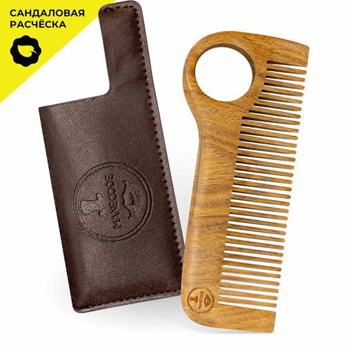 НАЙТИ ВЫГОДНЕЕ - Расчёска для бороды и волос Manecode из натурального сандала с Anti-Static эффектом в чехле из экокожи