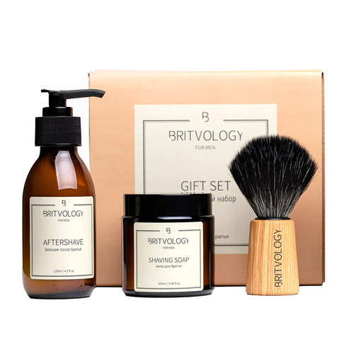 НАЙТИ ВЫГОДНЕЕ - Набор для бритья BRITVOLOGY, крем-мыло для бритья, бальзам после бритья, помазок с ворсом из фибры