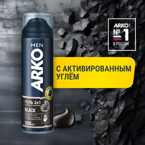 НАЙТИ ВЫГОДНЕЕ - Гель для бритья и умывания Black 2 в 1 Arko, 200 мл с активированным углем