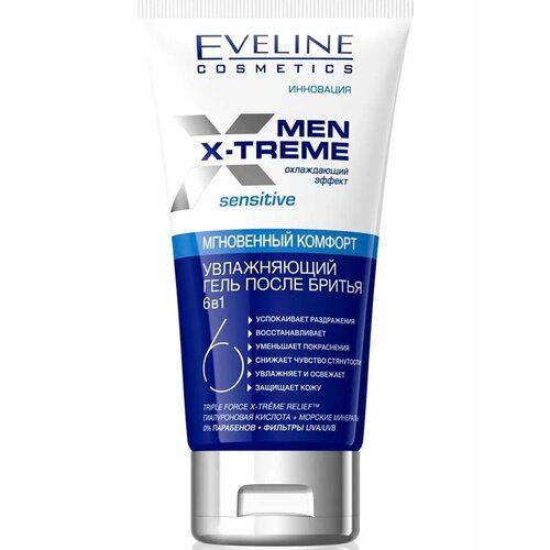 Увлажняющий гель после бритья 6В1 MEN X-TREME. Технологически усовершенствованная формула геля, обогащенная гиалуроновой кислотой и морскими минералами, обеспечивает интенсивное увлажнение кожи после бритья. Уменьшает покраснения и жжение. Моментально охлаждает и освежает раздраженную кожу.