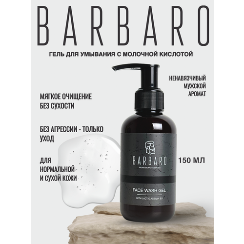 Гель для умывания мужской BARBARO с молочной кислотой и трегалозой подходит для ежедневного ухода за нормальной, сухой и проблемной кожей.