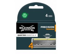 Wilkinson Sword Сменные кассеты QUATTRO Titanium Essential Precision (4 шт.), 4 лезвия + лезвие-триммер, увл. полоска 4696449825