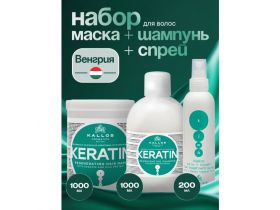 Набор профессиональный Kallos Keratin, шампунь + маска + спрей, 2300 мл 103597629002